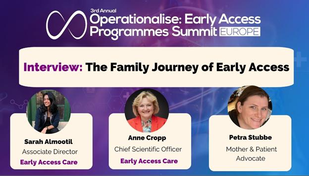 We are honored to deliver a session on the patient journey at the Europe EAP Summit to hear about the remarkable 5-year journey of one family. Join Early Access Care, LLC at the Summit to hear their story. We will continue to bring you the interview with Petra following the conference.